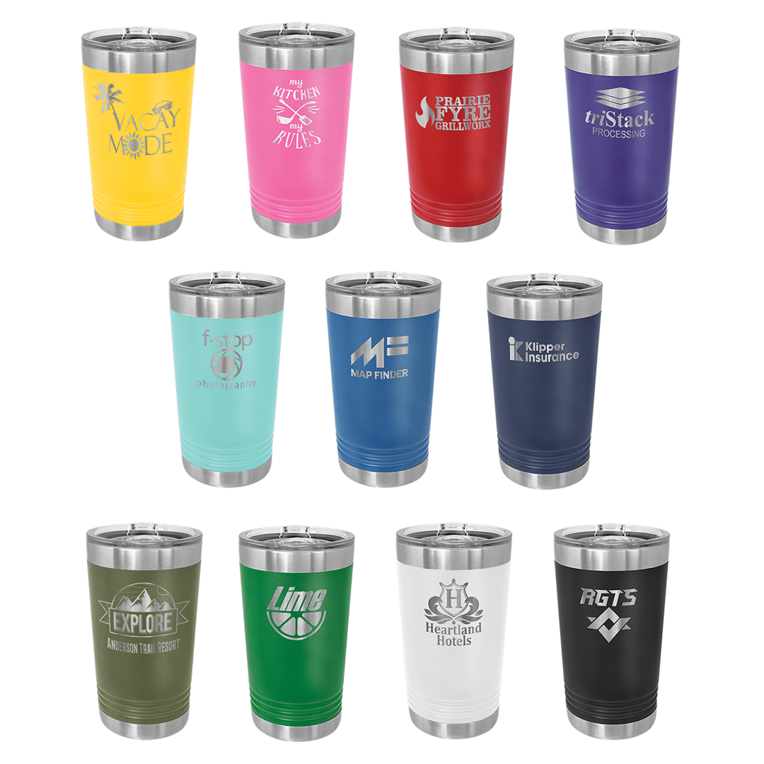 This 16 oz. Polar Camel tumbler is designed with double wall, vacuum insulated construction to provide superior heat and cold retention. Comes with clear slider lid.