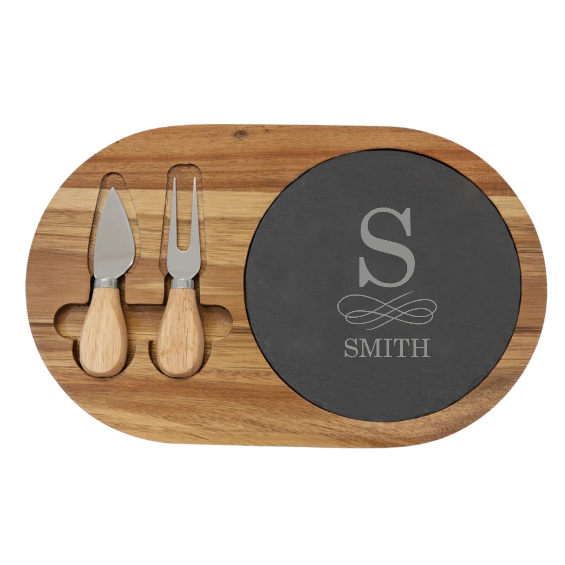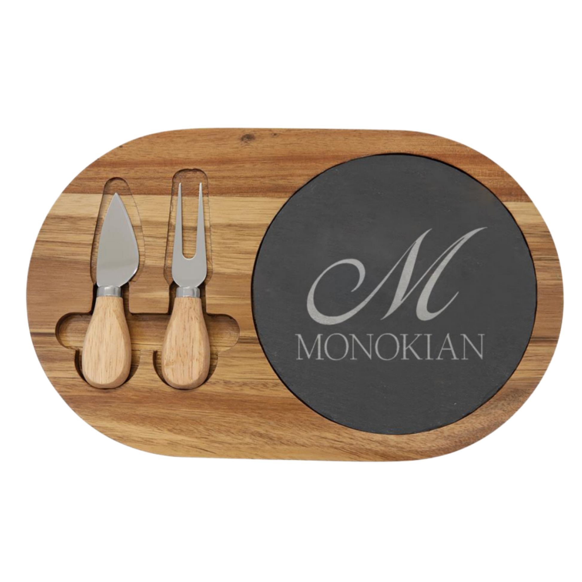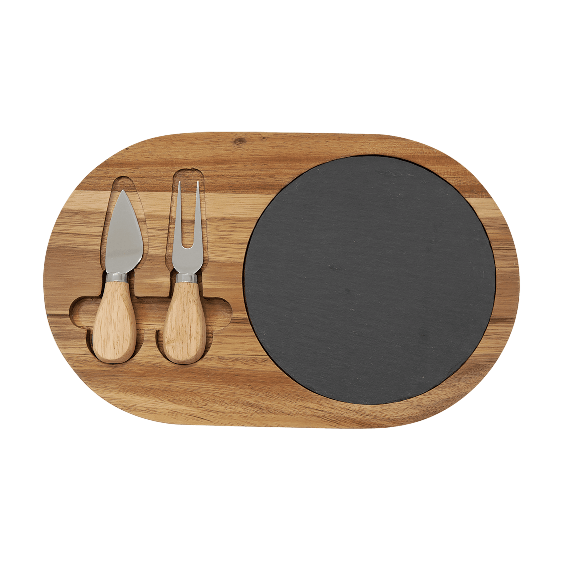Acacia Wood/Slate Oval Cheese Set with Two Tools.