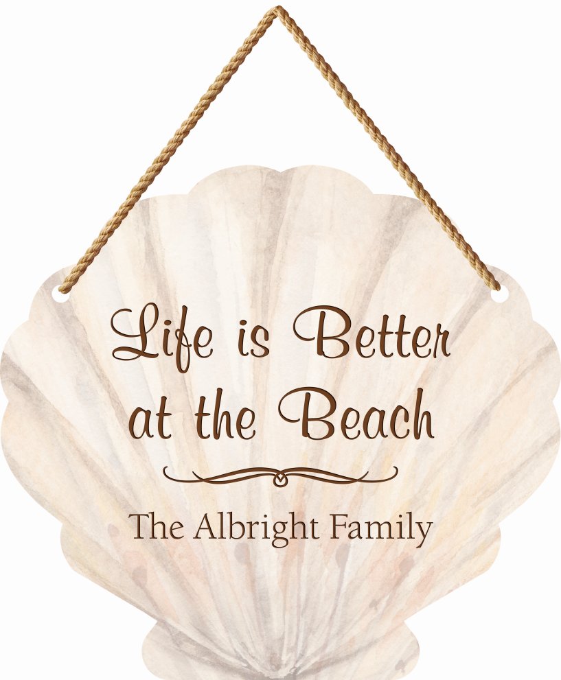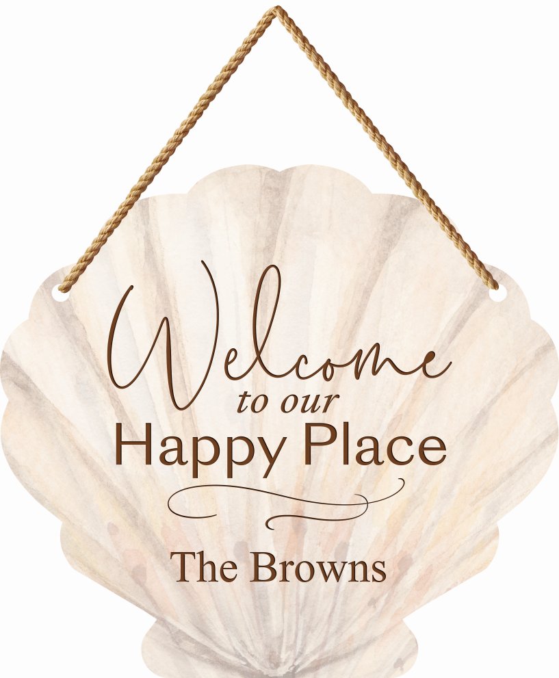 This lovely shell-shaped sign will be the perfect addition to any beach house, or house of a beach lover!
